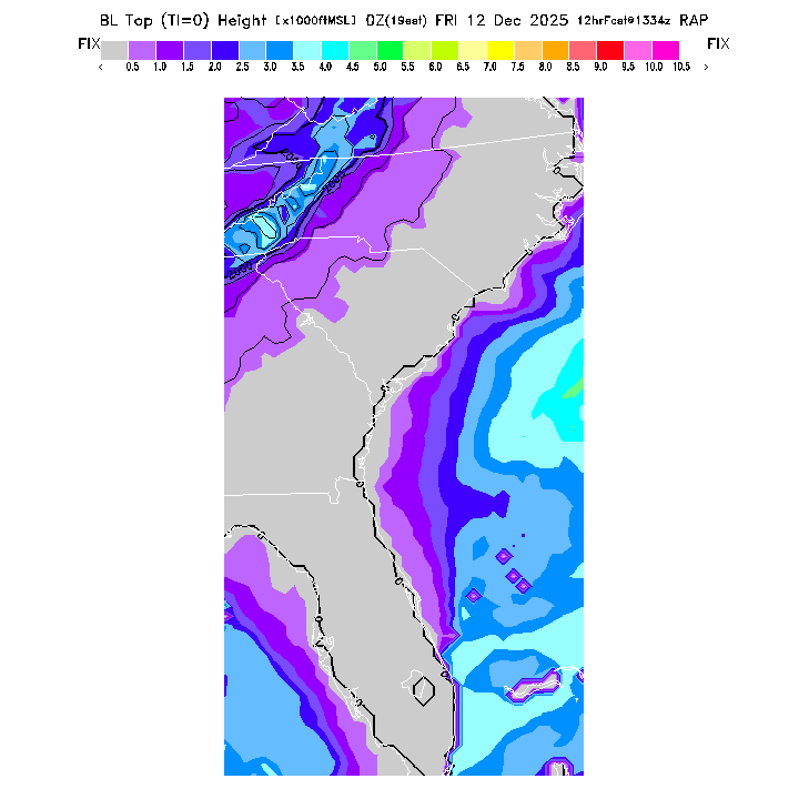 12Z: Height of Boundary Layer Top (TI=0 height)
