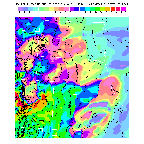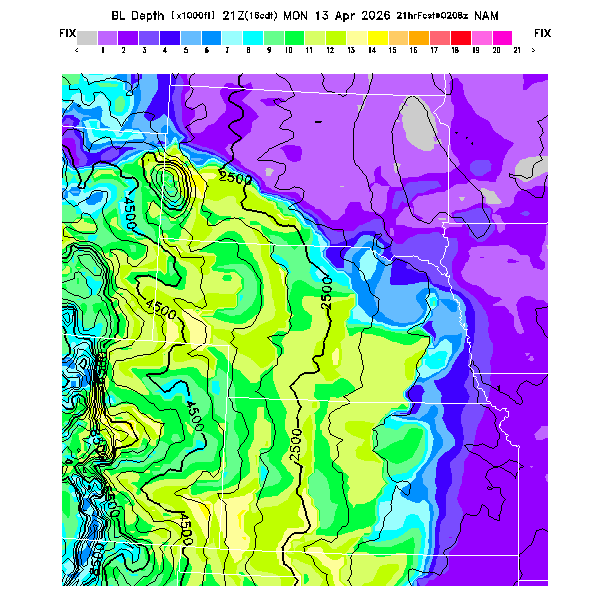 Depth of the layer mixed by thermals.  This parameter can be useful in determining which flight direction allows better thermalling conditions when average surface elevations vary greatly in differing directions.  MoreInfo