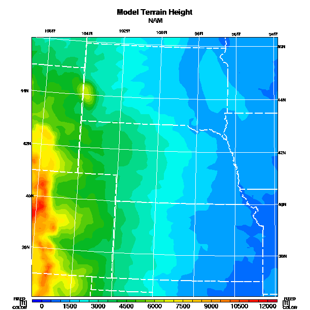 The parameters are averages over 12 km grid squares as forecast by the NOAA's National Centers for Environmental Prediction (NCEP) NAM model. Other NAM forecasts are also available from various sources, including Unisys NAM forecast maps, NAM forecast soundings, and NAM forecast meteograms.  NAM BLIPMAPs are updated as new NAM forecasts become available, normally at 6 hr intervals.