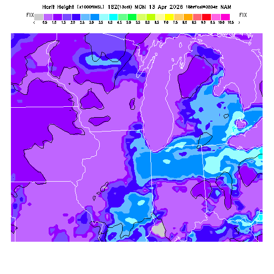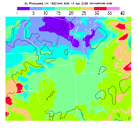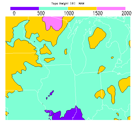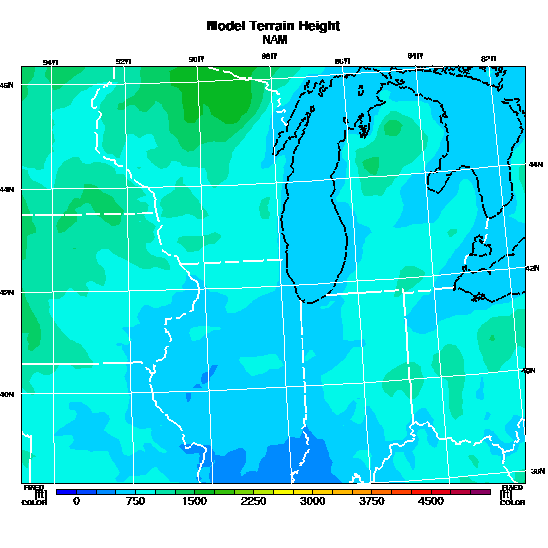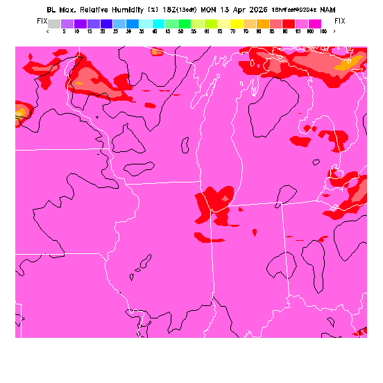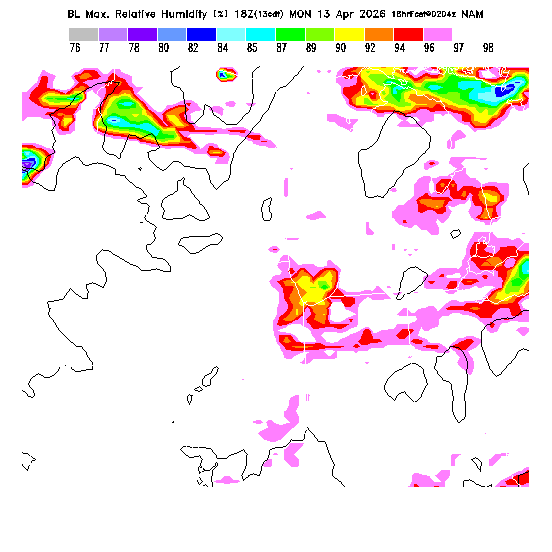 The parameters are averages over 12 km grid squares as forecast by the NOAA's National Centers for Environmental Prediction (NCEP) NAM model. Other NAM forecasts are also available from various sources, including Unisys NAM forecast maps, NAM forecast soundings, and NAM forecast meteograms.  NAM BLIPMAPs are updated as new NAM forecasts become available, normally at 6 hr intervals.