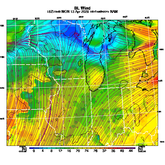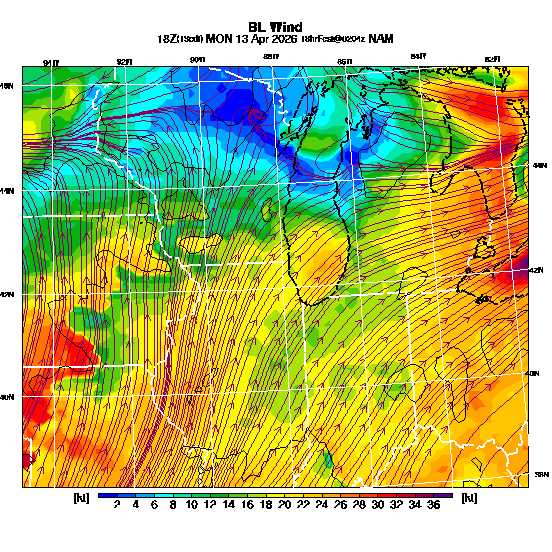 BL Wind Direction streamlines overlay BL Wind Speed contours,  See "Wind Speed in the Boundary Layer" and "Wind Direction in the Boundary Layer" parameter descriptions below for more information.