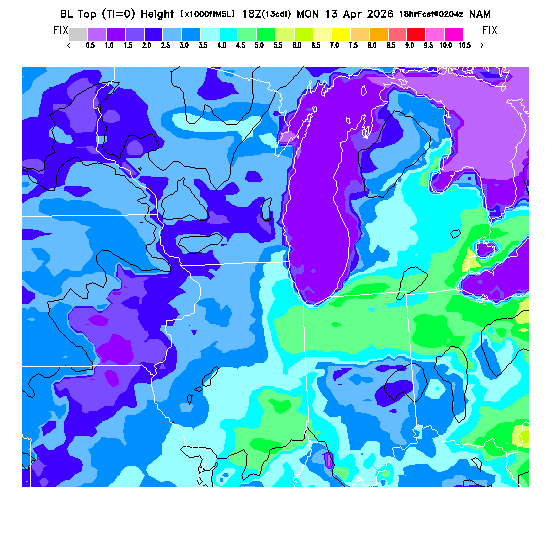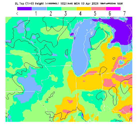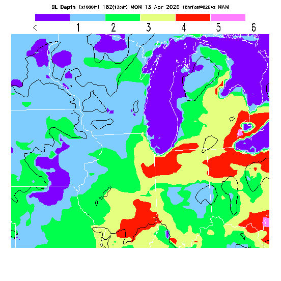 Depth of the layer mixed by thermals.  This parameter can be useful in determining which flight direction allows better thermalling conditions when average surface elevations vary greatly in differing directions.  MoreInfo