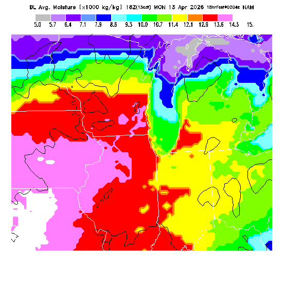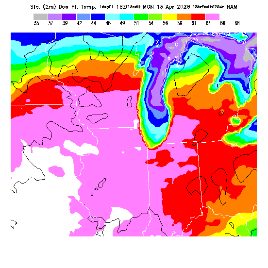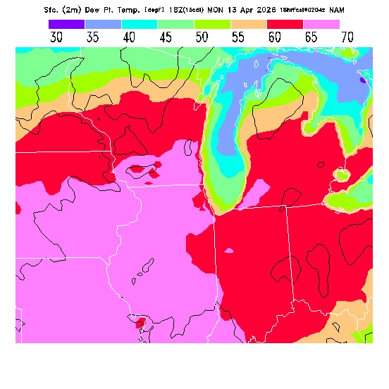 This model-predicted surface dew point temperature can be compared to the actual dew point temperature at 2m during the day to evaluate the accuracy of model moisture predictions.  MoreInfo
