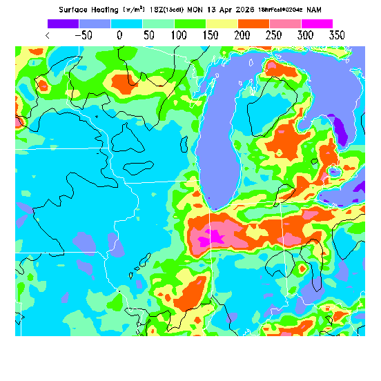 Heat transferred into the atmosphere due to solar heating of the ground, i.e. the heating that creates thermals.   [This parameter is truncated at -100 and +1000 for plotting.]   MoreInfo
