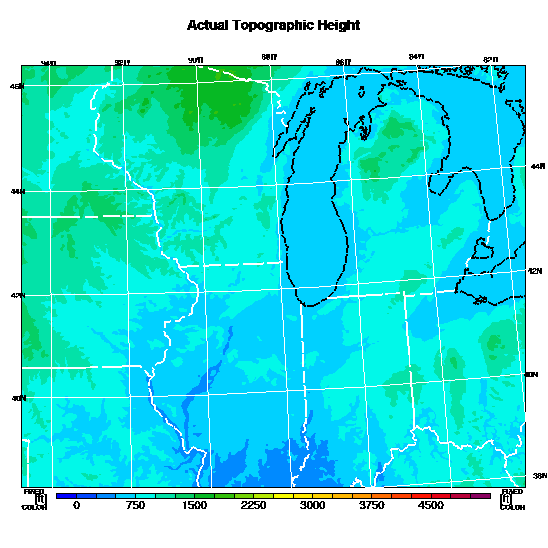 The parameter values are represented by color hues which increase in "warmness" as the value increases in magnitude.  When many gradations are required, two cycles are made through the color wheel with "light" and "intense" tints respectively representing ranges of lower and higher magnitude. A screen magnifying tool, such as the freeware Super Magnify for Windows machines or Xzoom for X11/Linux/Unix machines, helps when discrimination between adjacent contours is difficult.  Alternatively, the size of an image can be increased/decreased by many browsers (Firefox users can install the Image Zoom plug-in extension to add that capability).