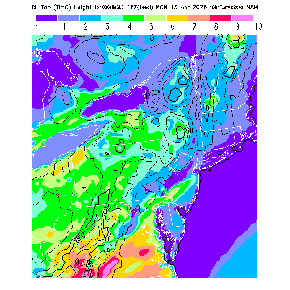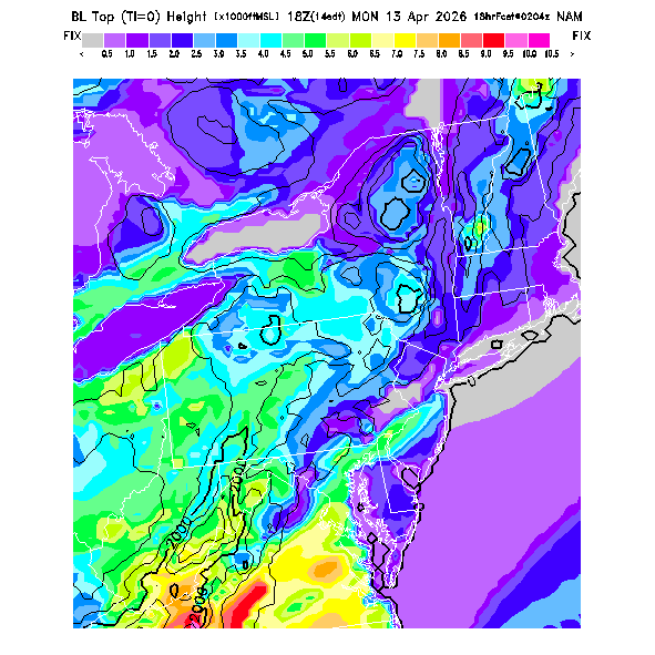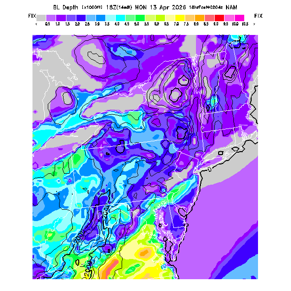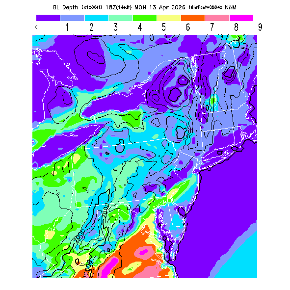 Depth of the layer mixed by thermals.  This parameter can be useful in determining which flight direction allows better thermalling conditions when average surface elevations vary greatly in differing directions.  MoreInfo