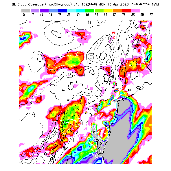The following experimental cloud parameters are available only from NAM model forecasts: