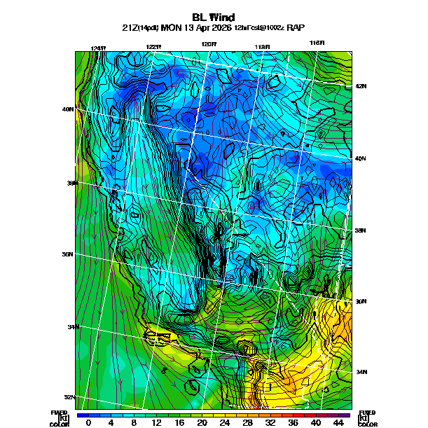 BL Wind Direction streamlines overlay BL Wind Speed contours,  See "Wind Speed in the Boundary Layer" and "Wind Direction in the Boundary Layer" parameter descriptions below for more information.
