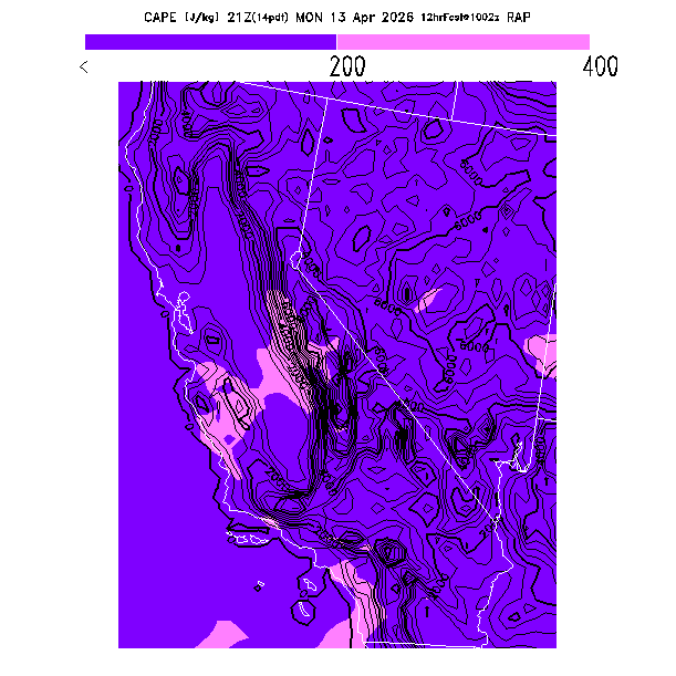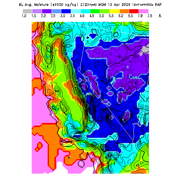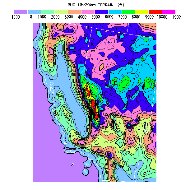 The parameters are averages over 20km grid squares as forecast by NOAA's Forecast Systems Laboratory RAP model as run operationally by NOAA's NCEP (National Centers for Environmental Prediction) RAP BLIPMAPs are updated as new RAP forecasts become available, normally at 3 hr intervals.