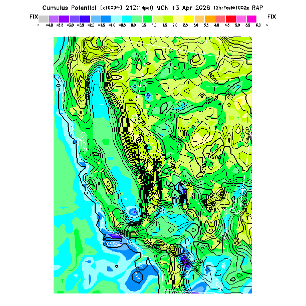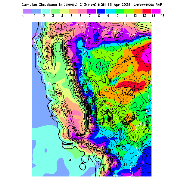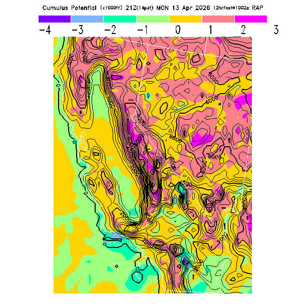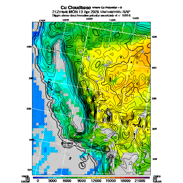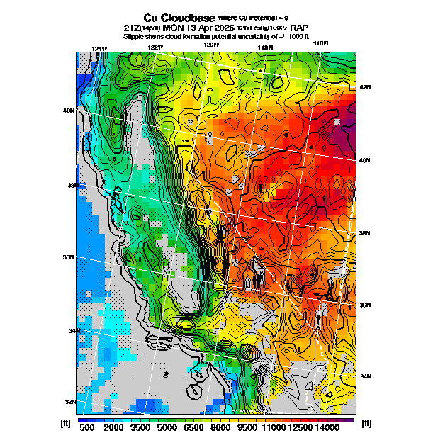 Cu Cloudbase Cloudbase contours are plotted only where that cloudbase is theoretically expected.  See "Cumulus Potential" and "Cumulus Cloudbase" parameter descriptions below for more information.  This composite is useful only for locations where the actual potential threshold for cumulus cloud production agrees with the theoretically-predicted value of zero.