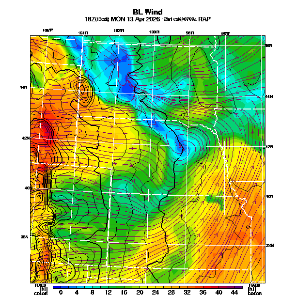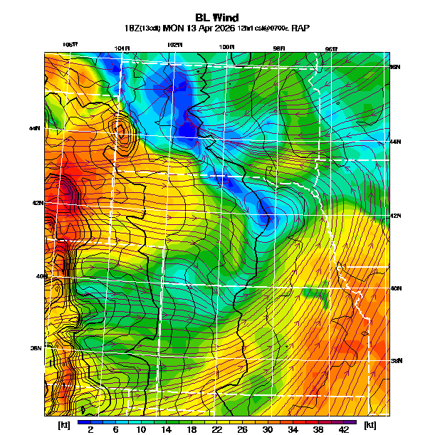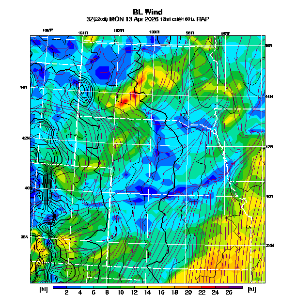 BL Wind Direction streamlines overlay BL Wind Speed contours,  See "Wind Speed in the Boundary Layer" and "Wind Direction in the Boundary Layer" parameter descriptions below for more information.