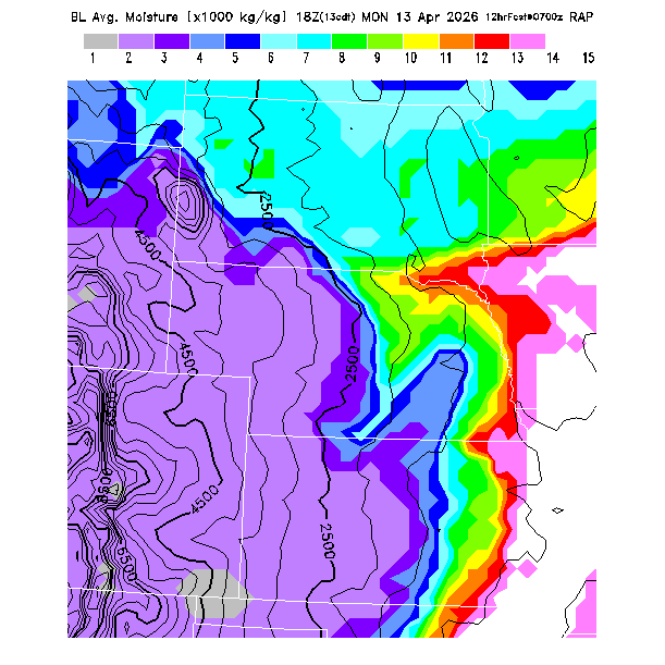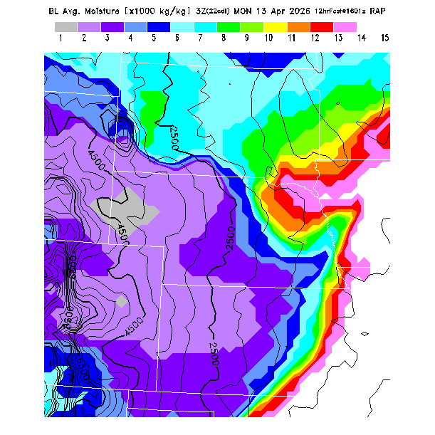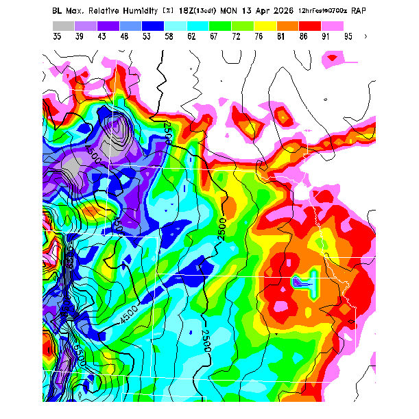 The parameters are averages over 20km grid squares as forecast by NOAA's Forecast Systems Laboratory RAP model as run operationally by NOAA's NCEP (National Centers for Environmental Prediction) RAP BLIPMAPs are updated as new RAP forecasts become available, normally at 3 hr intervals.