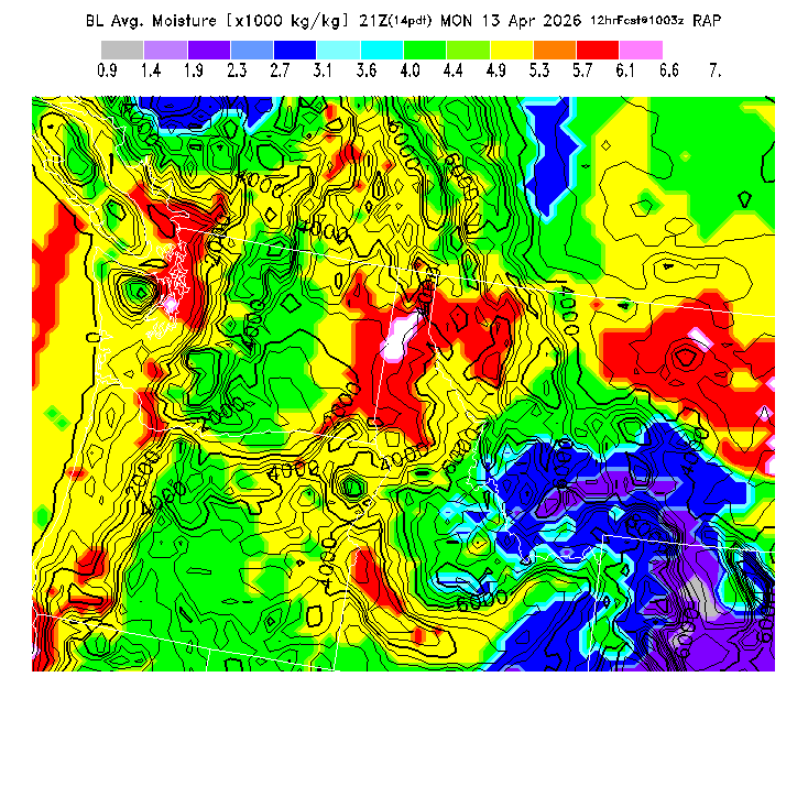 The parameters are averages over 20km grid squares as forecast by NOAA's Forecast Systems Laboratory RAP model as run operationally by NOAA's NCEP (National Centers for Environmental Prediction) RAP BLIPMAPs are updated as new RAP forecasts become available, normally at 3 hr intervals.