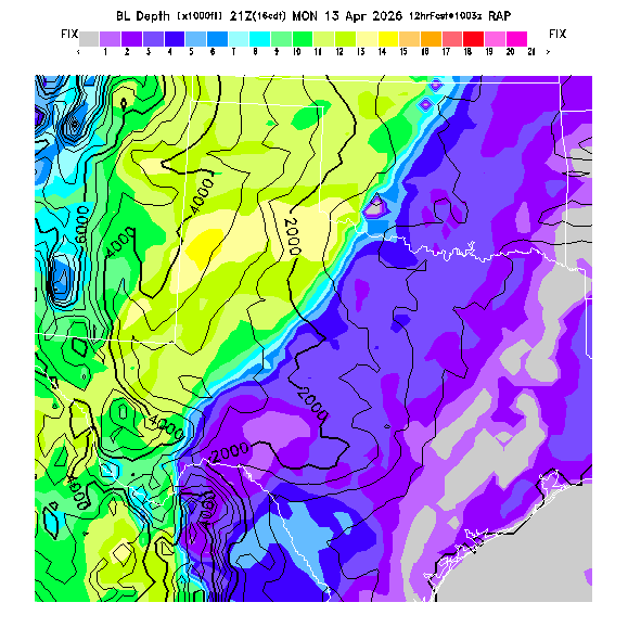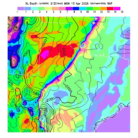 Depth of the layer mixed by thermals.  This parameter can be useful in determining which flight direction allows better thermalling conditions when average surface elevations vary greatly in differing directions.  MoreInfo