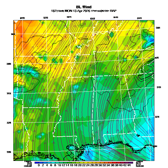 BL Wind Direction streamlines overlay BL Wind Speed contours,  See "Wind Speed in the Boundary Layer" and "Wind Direction in the Boundary Layer" parameter descriptions below for more information.