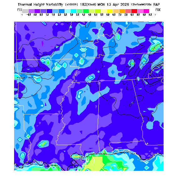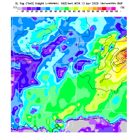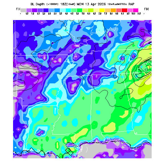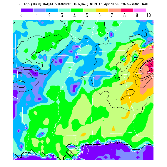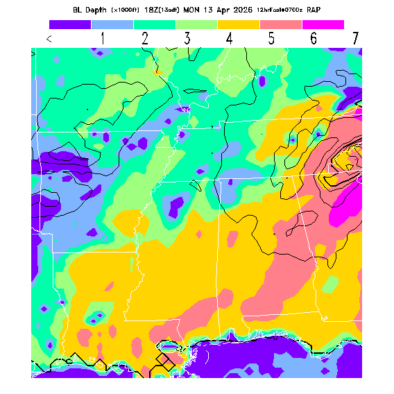 Depth of the layer mixed by thermals.  This parameter can be useful in determining which flight direction allows better thermalling conditions when average surface elevations vary greatly in differing directions.  MoreInfo