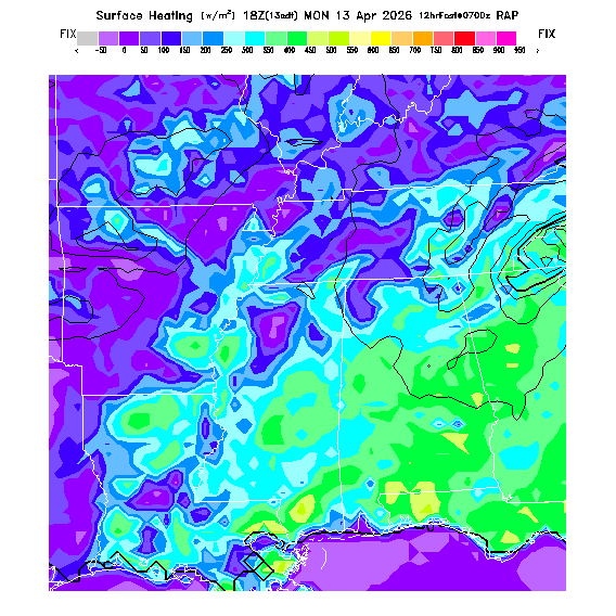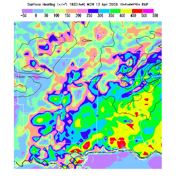 Heat transferred into the atmosphere due to solar heating of the ground, i.e. the heating that creates thermals.   [This parameter is truncated at -100 and +1000 for plotting.]   MoreInfo