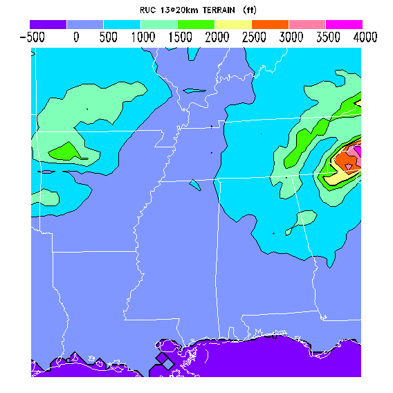 The parameters are averages over 20km grid squares as forecast by NOAA's Forecast Systems Laboratory RAP model as run operationally by NOAA's NCEP (National Centers for Environmental Prediction) RAP BLIPMAPs are updated as new RAP forecasts become available, normally at 3 hr intervals.