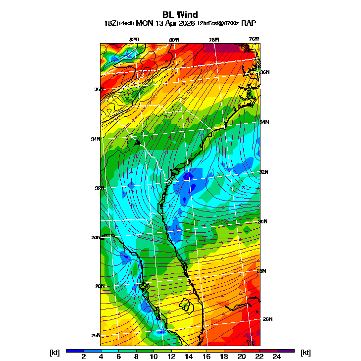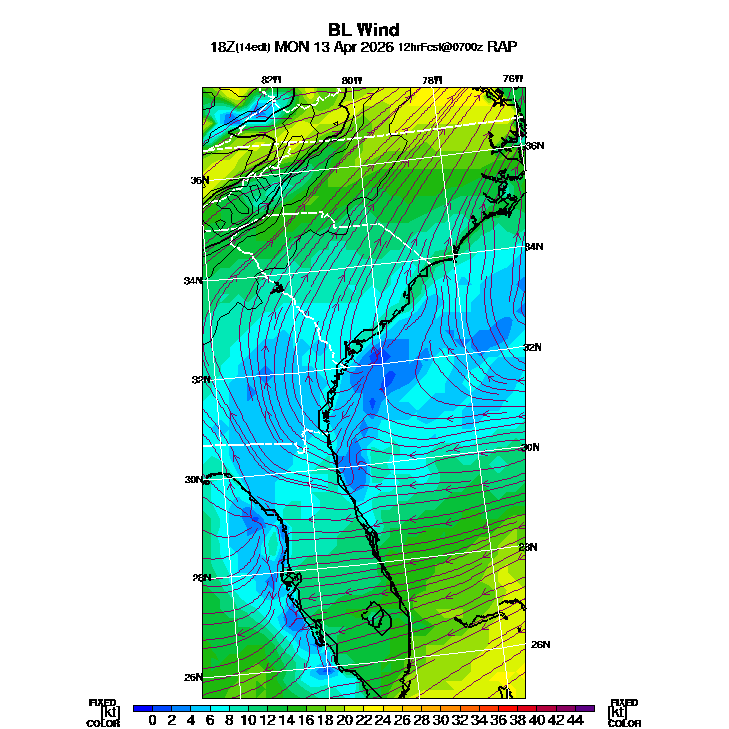 BL Wind Direction streamlines overlay BL Wind Speed contours,  See "Wind Speed in the Boundary Layer" and "Wind Direction in the Boundary Layer" parameter descriptions below for more information.