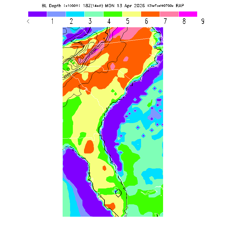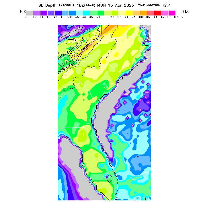 Depth of the layer mixed by thermals.  This parameter can be useful in determining which flight direction allows better thermalling conditions when average surface elevations vary greatly in differing directions.  MoreInfo